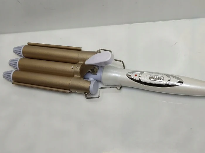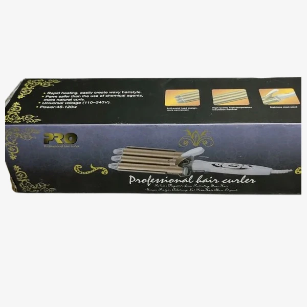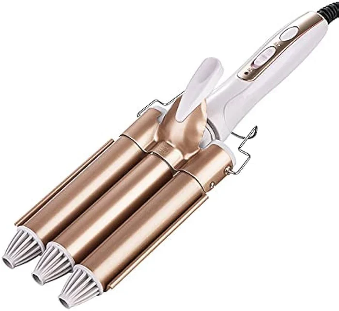 Fer à boucler professionnel à trois cylindres – PS. Ce fer à boucler à triple cylindre en céramique offre un contrôle de température de 180 à 220 degrés. Obtenez des ondulations définies et un effet wavy naturel en quelques minutes seulement, sans abîmer vos cheveux. Le cylindre en céramique respecte vos cheveux et vous garantit de magnifiques ondulations.